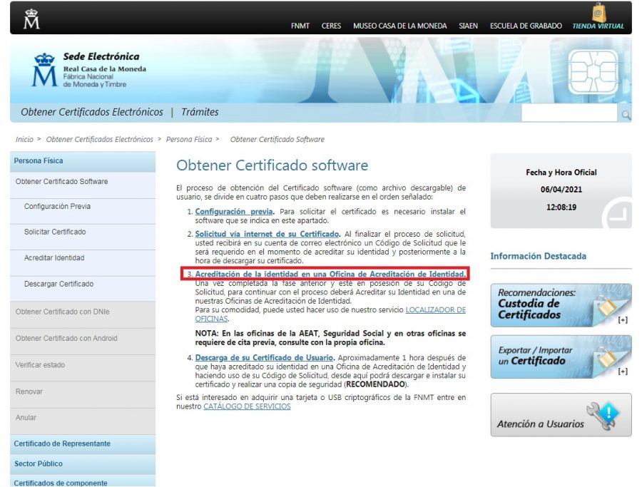 2. Recuerde que la solicitud y la obtención del certificado tienen que realizarse desde el mismo ordenador y navegador web de manera obligatoria.